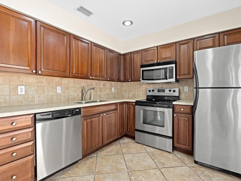 Located in the desirable Clearbrooke community, this spacious-3-bedroom, 1.5-bath townhome features a number of recent upgrades, including new vinyl flooring upstairs, new interior paint and a new deck in the back of the home. The kitchen offers a new dishwasher and new LED recessed lighting as well as cherry cabinets and Corian countertops. Other notable features include two sets of French doors from the kitchen to the private deck and a covered parking spot. New water heater 2023. The pet-friendly community's amenities include a pool, clubhouse, pavilion, playground, and sidewalks with beautiful mature trees. It's also close to dining, restaurants and major roadways, with easy access to St. Pete-Clearwater International Airport and Tampa International Airport, and just minutes to top-rated beaches in Clearwater Beach, Dunedin and St. Pete Beach.